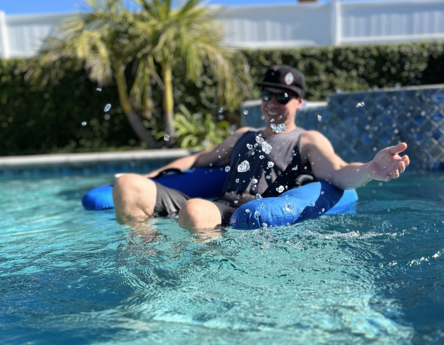 The AquaBoyPool Chair is a passion product brought to you by a small family business in SoCal USA. The fabric cover is sewn locally in Los Angeles, California. Buying directly from websites such as ours supports small, domestic businesses right here in America!